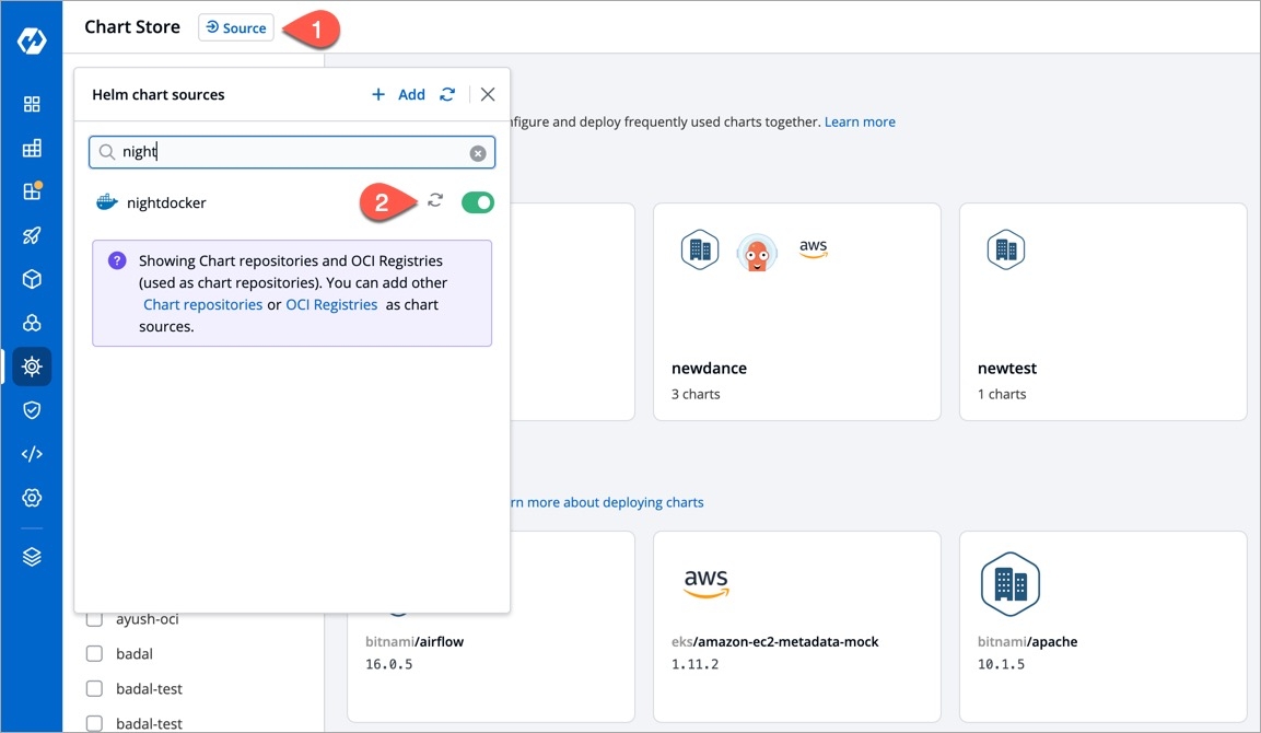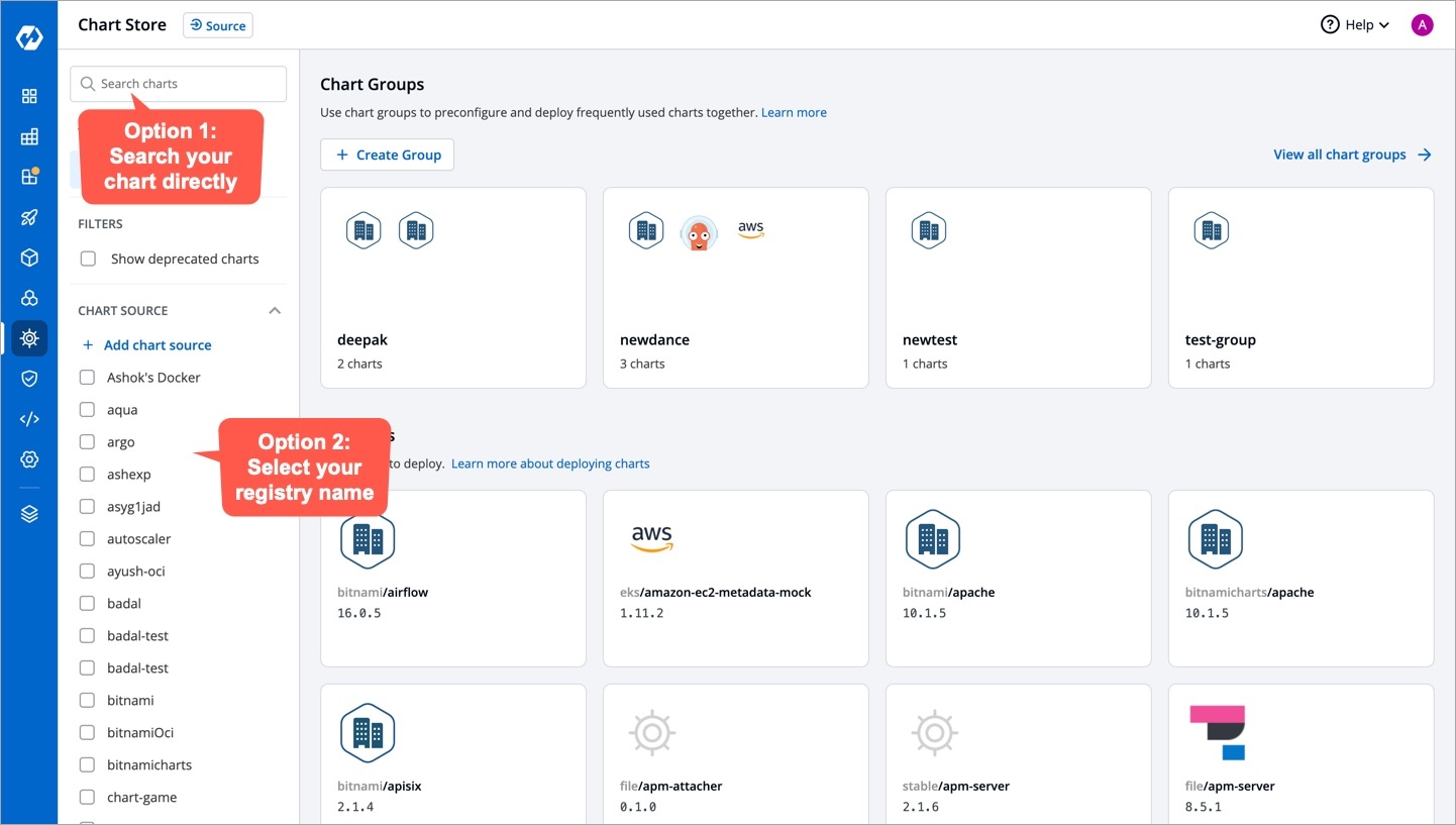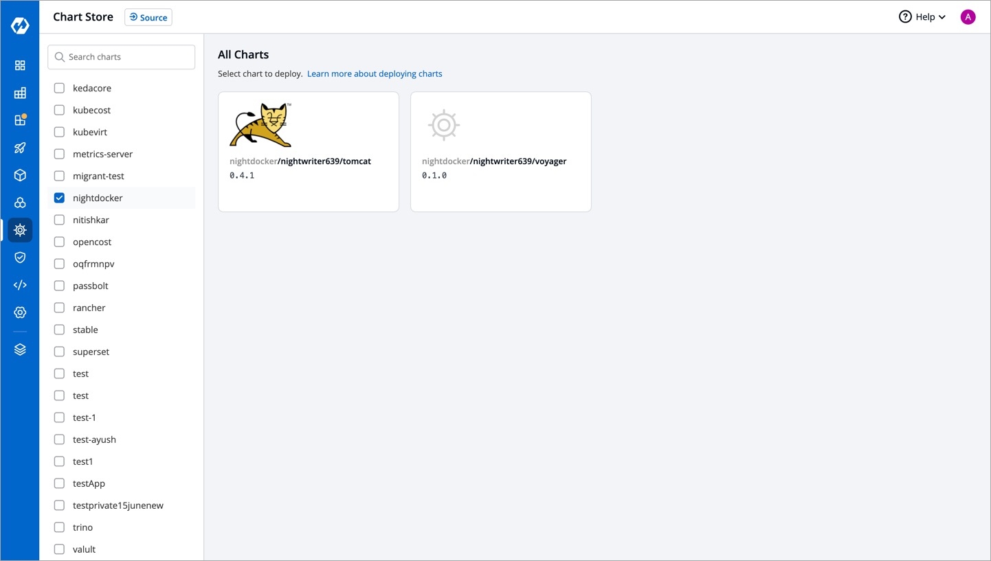Refer Manage Helm Apps to know the process of deploy helm charts from the chart store.