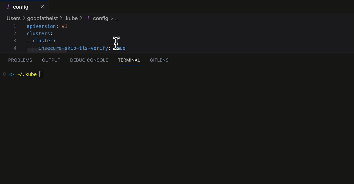 ~/.kubefolder on your local machine and open theconfigfile. Or you may create one with the following content: