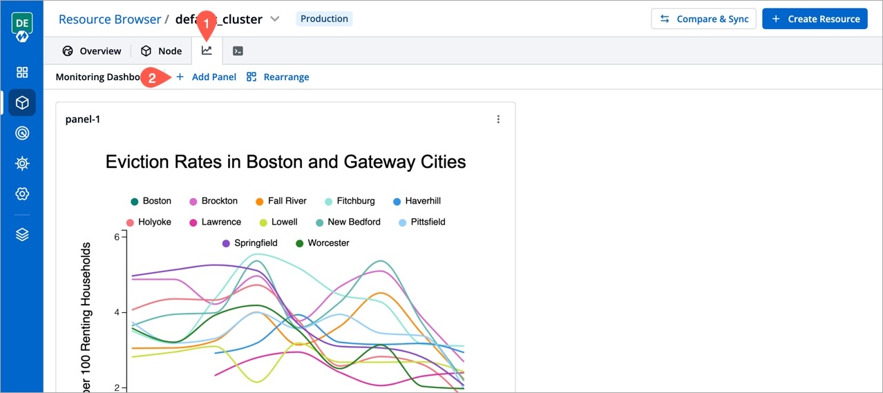 Click the graph icon as shown below and click the Add Panel button.