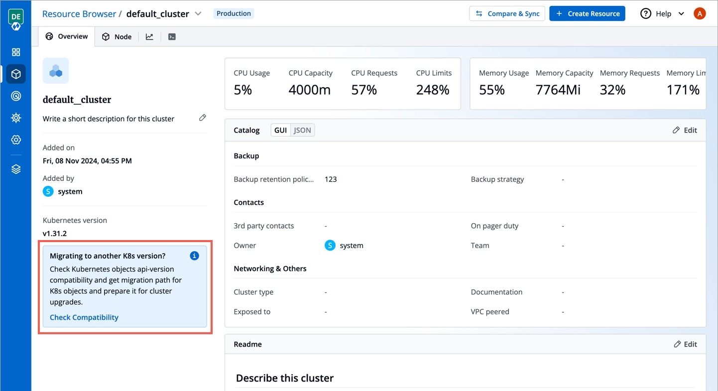 The Check Compatibility feature within Resource Browser scans your cluster and automatically identifies all such resources/workloads that need manual intervention before proceeding with an actual cluster upgrade.