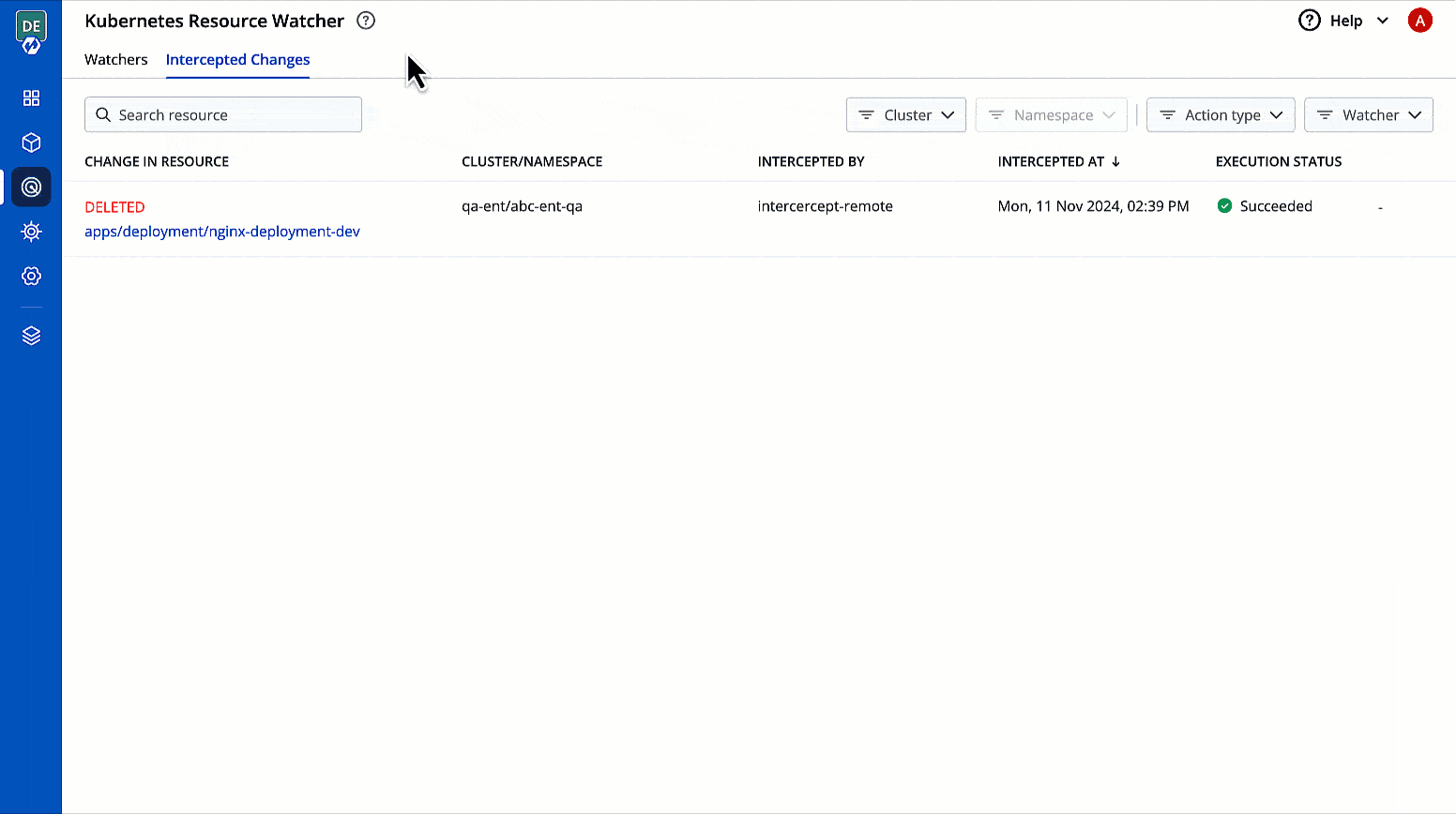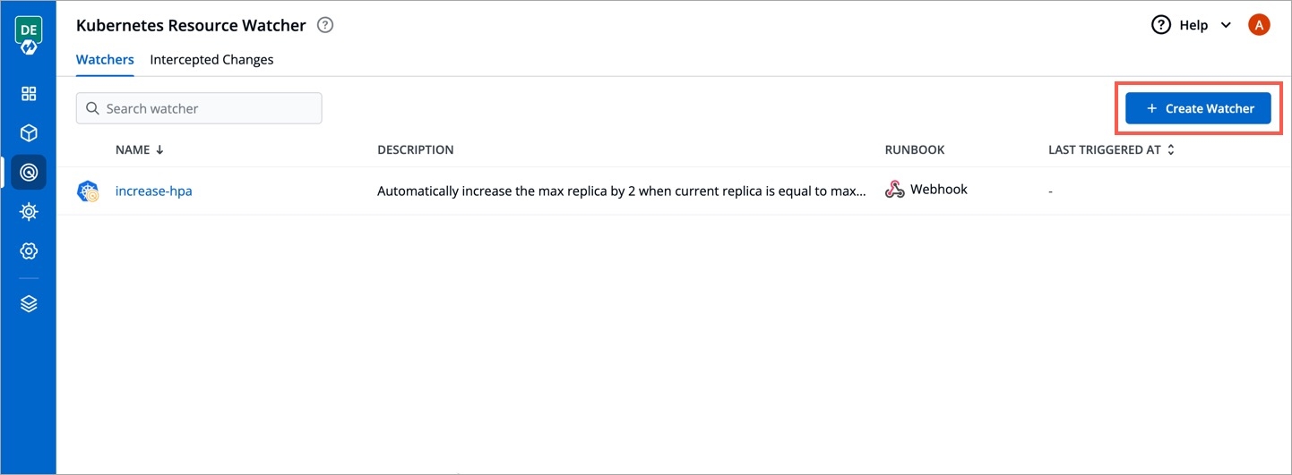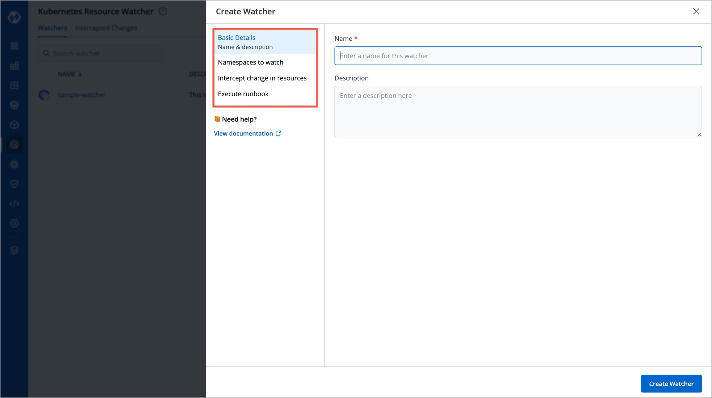 Click Create Watcher. Your watcher is now ready to intercept the changes to the selected resources.